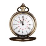 Gold White Roman Numerals Black Red Chain Necklace Pocket Watch Antique Vintage
